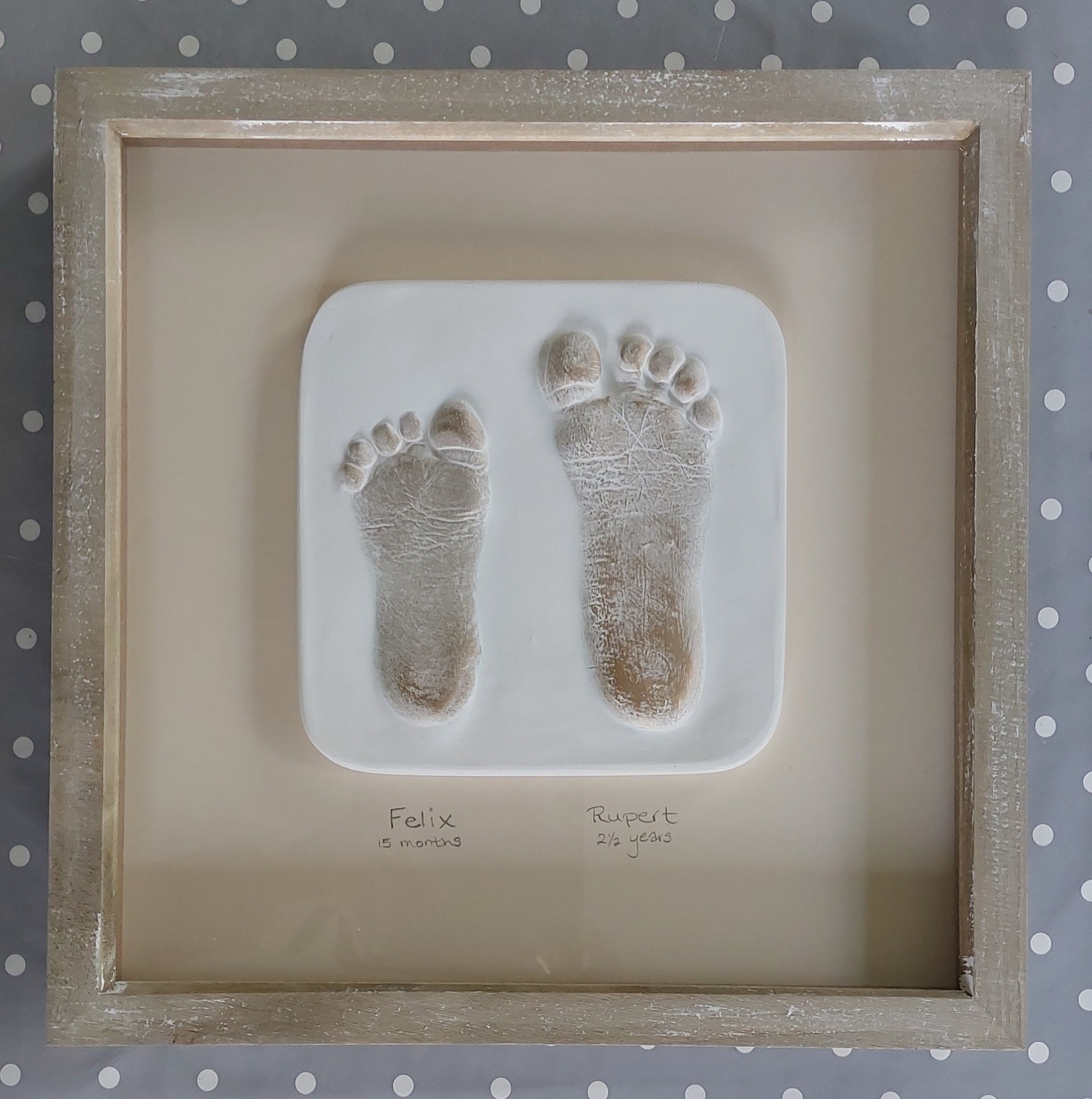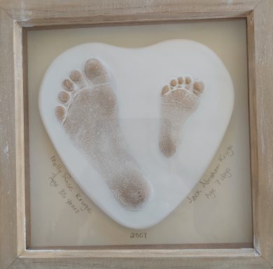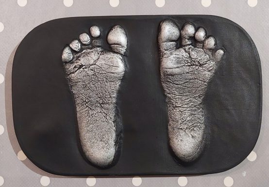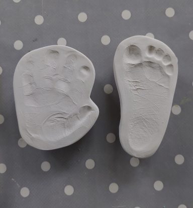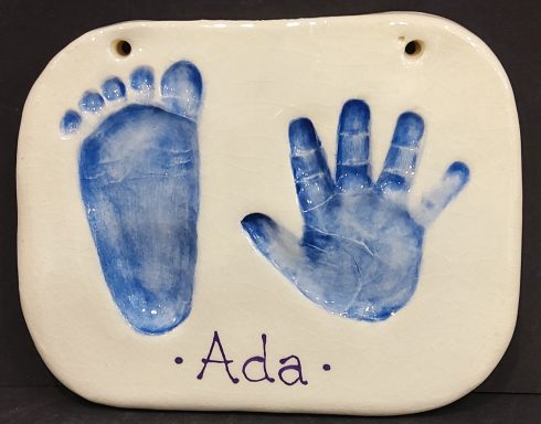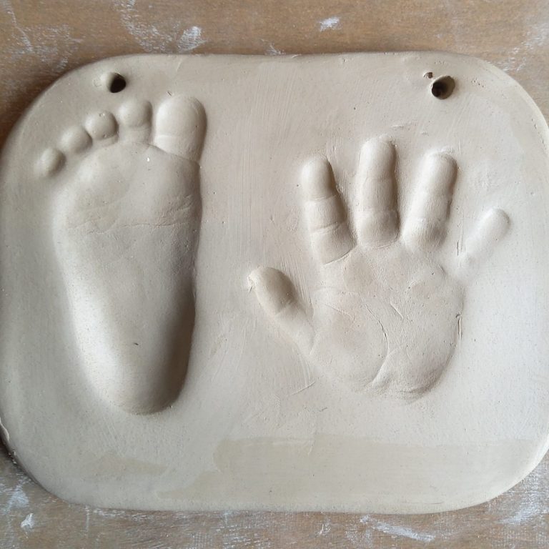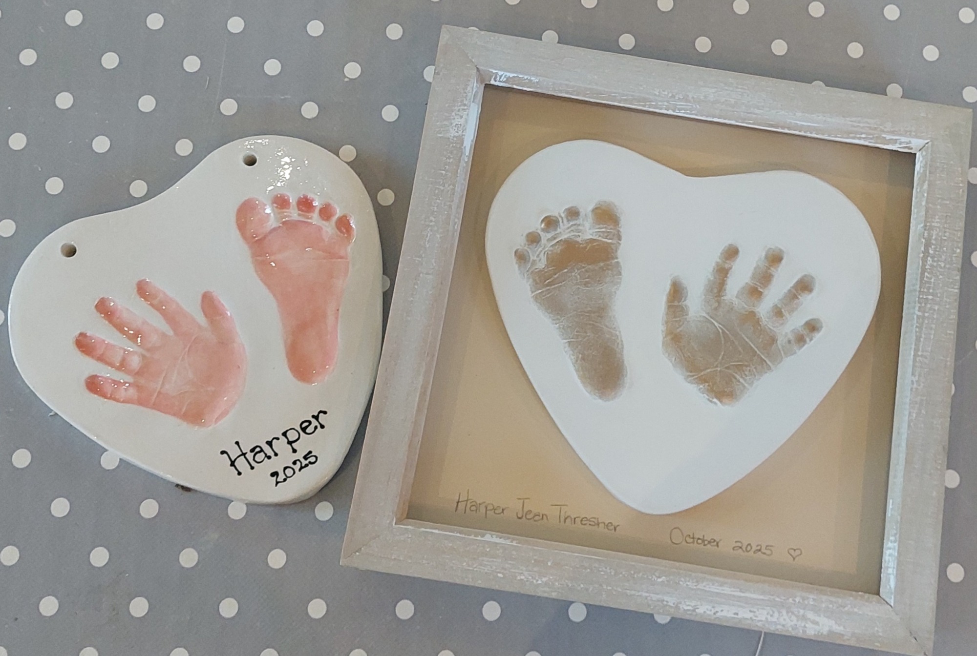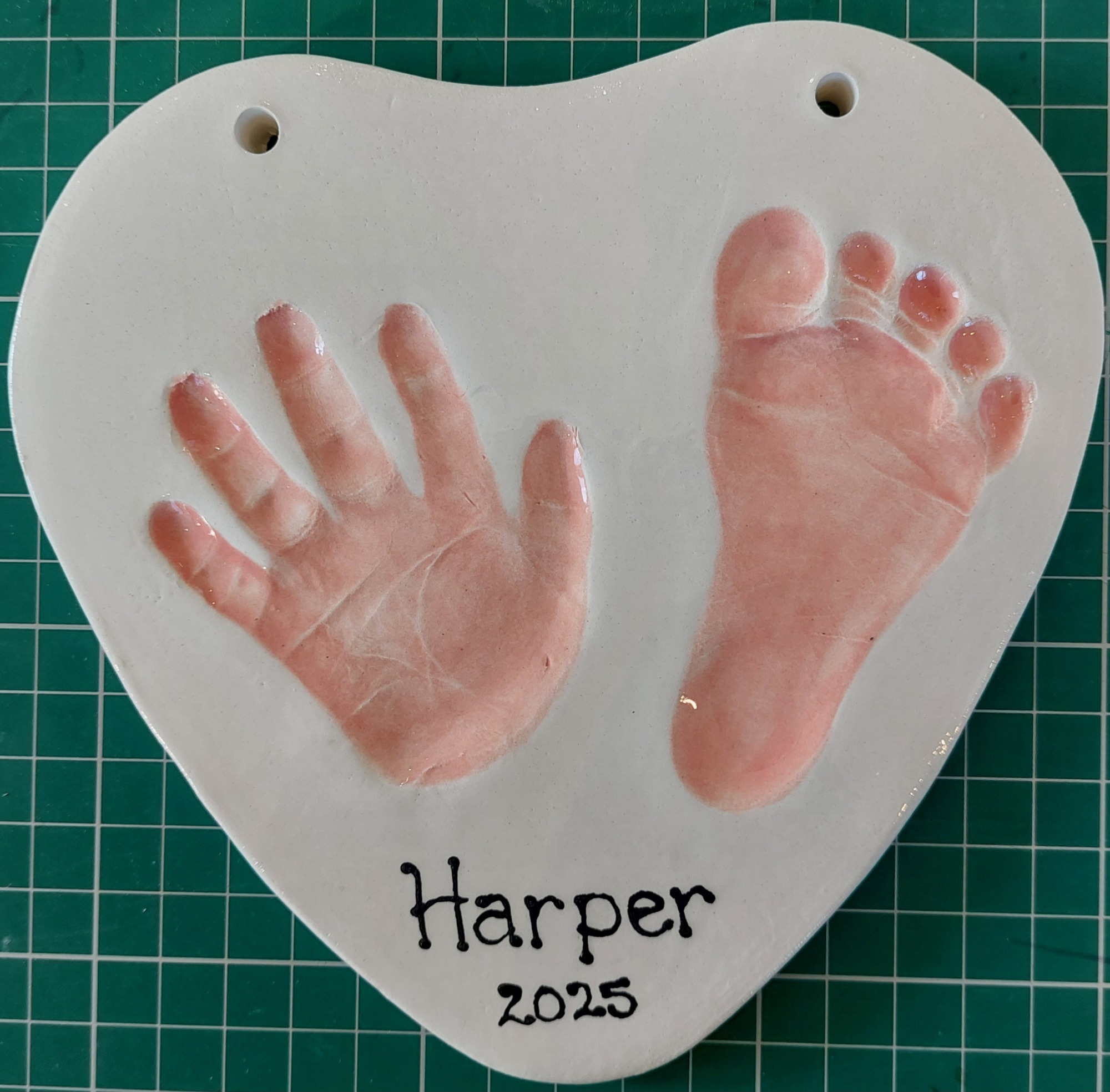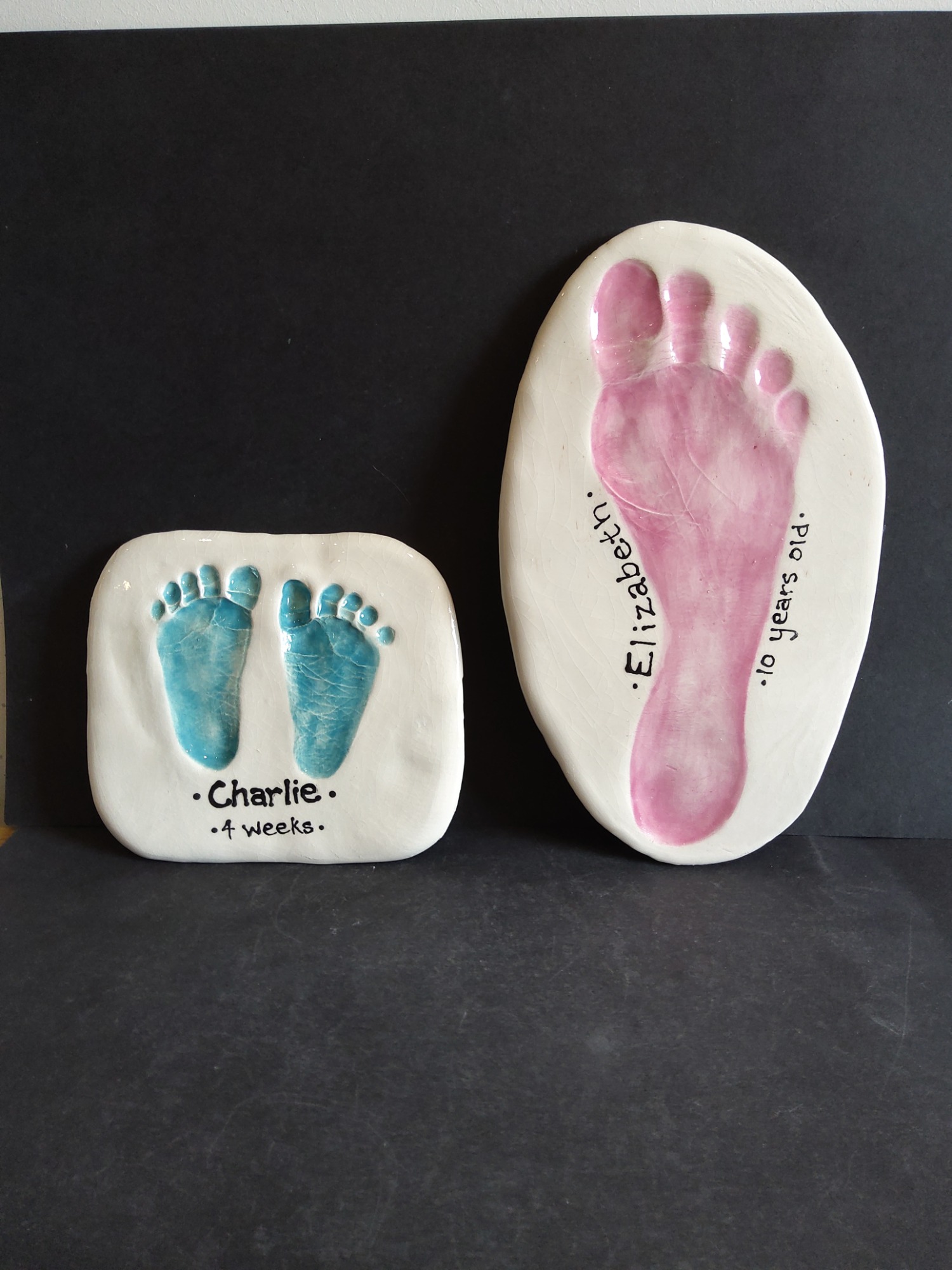 I use the softest clay to capture those impressions, which then will be finished to your specifications... glaze colour, writing, hanging plaque, framed... your choice of finished product.