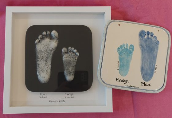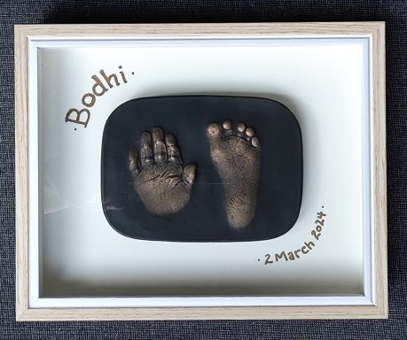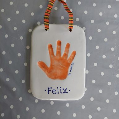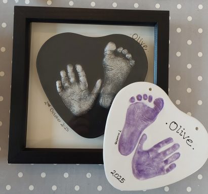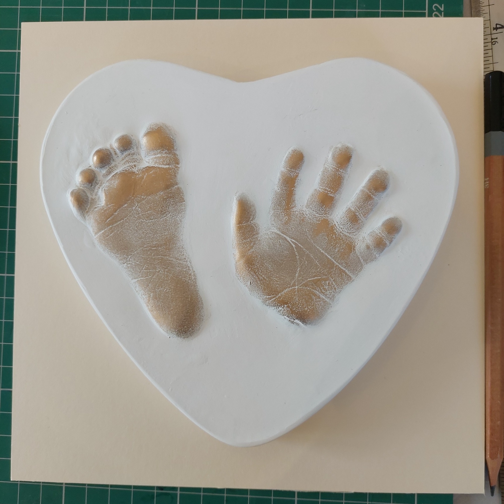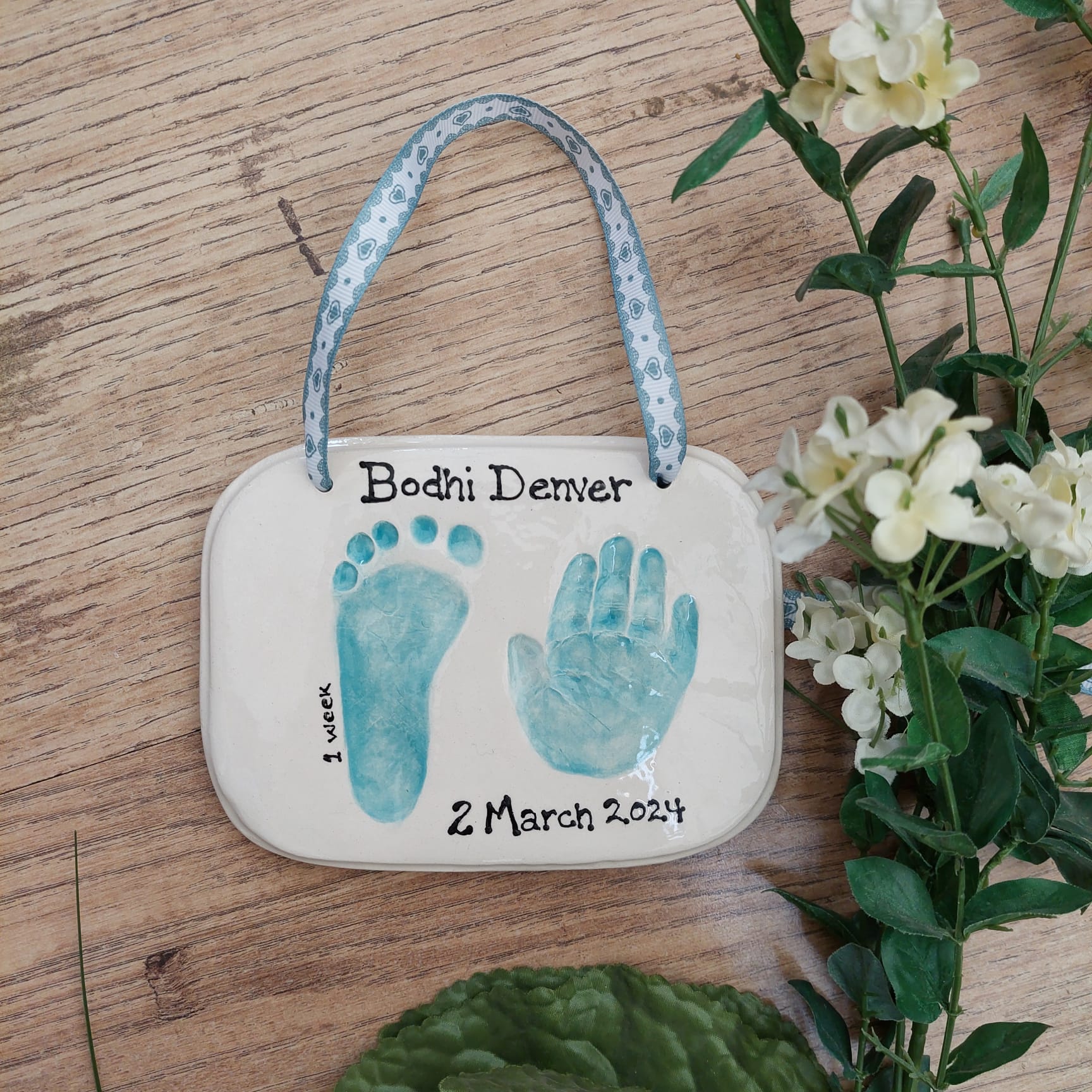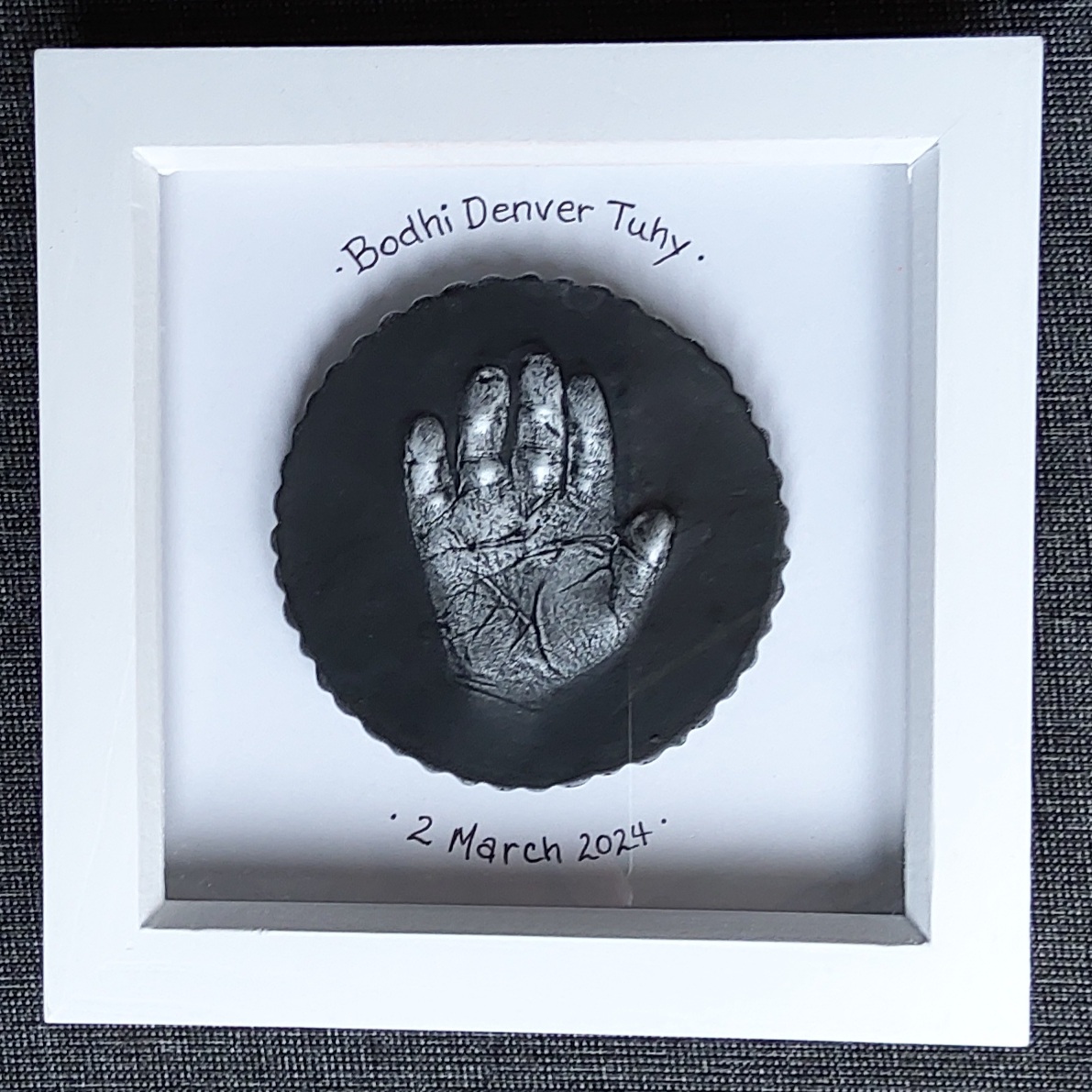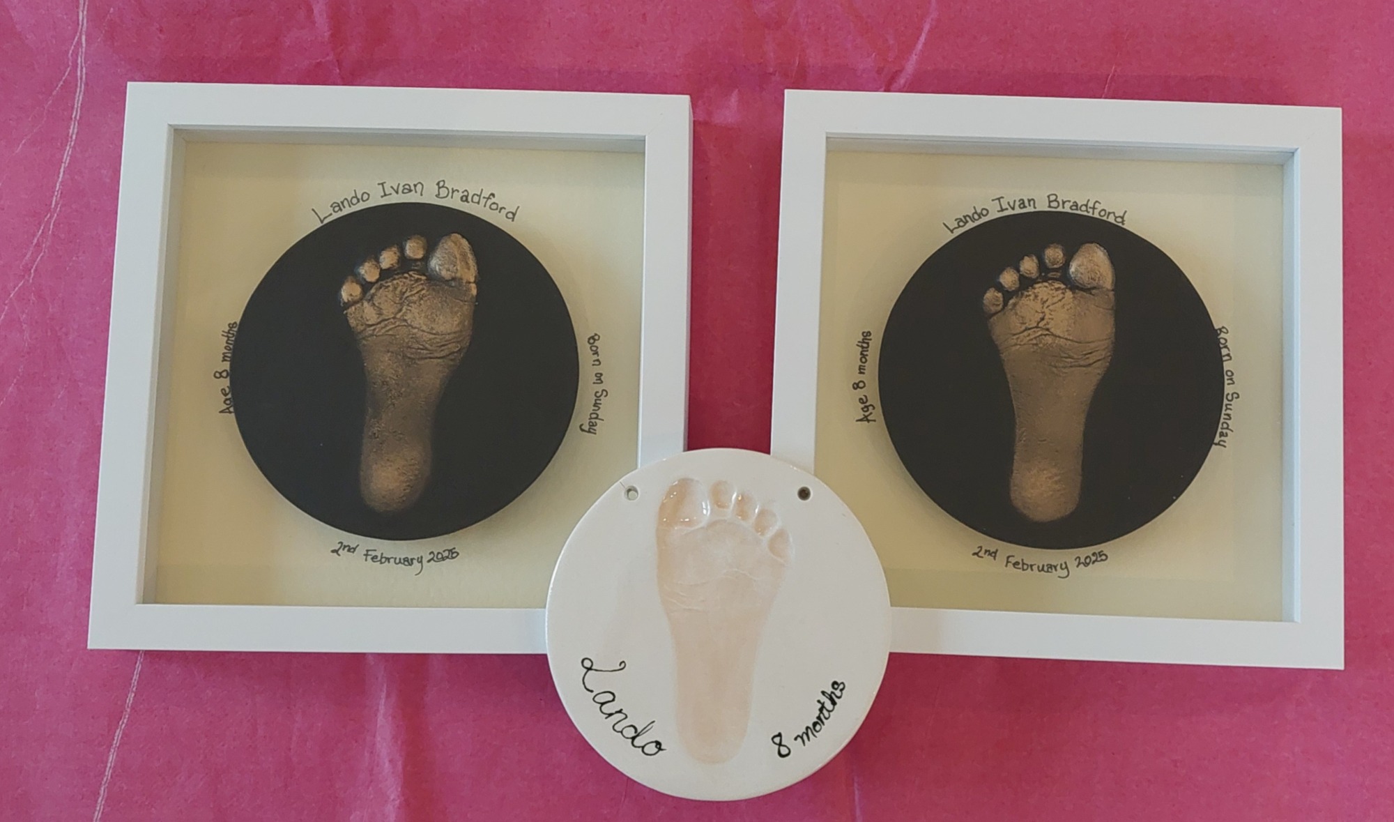 I use the softest clay to capture those impressions, which then will be finished to your specifications... glaze colour, writing, hanging plaque, framed... your choice of finished product.
