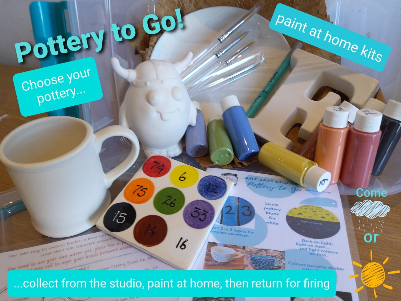 The studio can be booked for small groups or you can order a 'pottery to go' box, which will include everything needed to paint in the comfort of your own home.